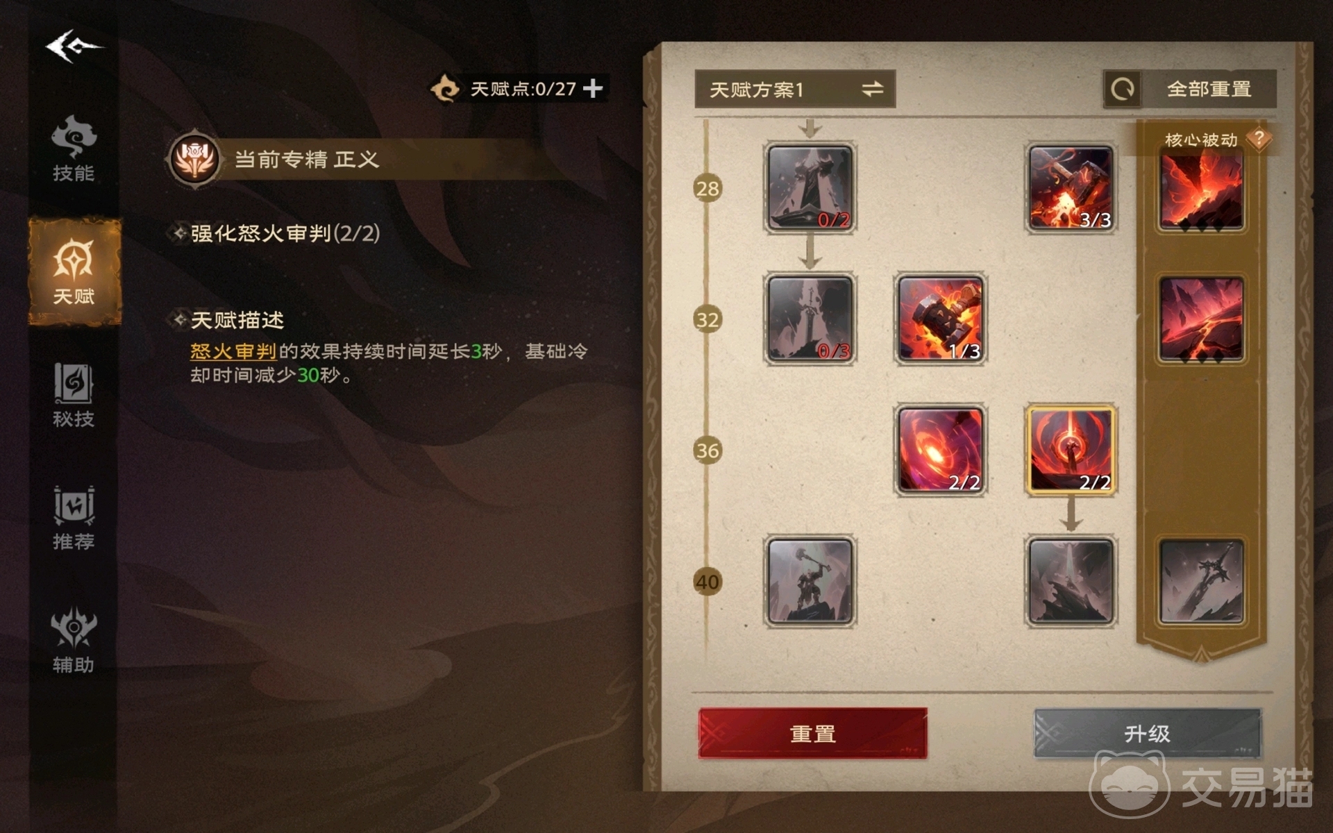 接下来第二层就是愤怒者、回响这两个天赋,可以让玩家有机率获得荣耀之力,还能提升玩家技能造成的伤害,第三层的天赋则是荣耀永存、正义风暴,其中荣耀永存是当玩家使用技能的时候,可以随机生成一个强化的效果,至于正义风暴这个天赋则是能让玩家在使用正义锤击这个技能的时候,对玩家造成强大的暴击伤害,还可以让玩家的法力消耗被免除。
