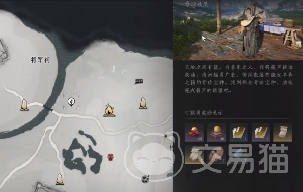 黄钟是需要玩家利用奇珍兑换出来的一件道具,因而玩家们可先去找到清河的奇珍商人。该商人的位置在将军祠对岸的草棚下,只要与他进行对话就能开启奇珍交换玩法,玩家可用收集来的奇珍与他兑换很多好东西,其中就包括黄钟这件道具。