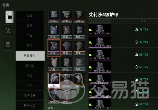 减伤的效果也很不错,非常推荐大家使用艾丽莎四级护甲,它的价格并不高,但是使用时是会有声纹的,介意的玩家可以选择普瑞德四级护甲,他的耐力也非常高,减伤效果也很不错,可以与敌人更好的来进行作战,如果资金不太够的玩家,也可以降低要求选择三级的护甲,之后大家还需要选择一些相关的辅助用品,在探索的过程中,最好选择25格以上的背包,可以装纳更多的资源和物品,资金不太够的玩家也可以在对决中来进行捡包。