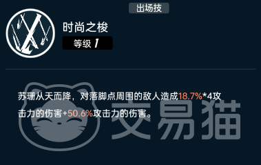 苏珊在开局阶段,可以利用自身的普攻优势,释放线条修饰效果,快速对附近敌人造成四段攻击伤害,并且自身的攻击效果,是会附加冰属性的,这个特殊的加成,可以让其快速清理掉敌人,对于闯关爬塔,推主线都是十分不错的选择,当然了,苏珊在战斗中,大家可以快速的累积伤害,对敌人造成持续压力!才是最为关键点!这个技能还可以衔接出场技能【时尚之梭】范围伤害技能。她从天而降,对周围敌人造成范围伤害。能在战斗开始时具有很大的优势,能够帮助苏珊迅速清理周围的小怪,为接下来的战斗做好准备!