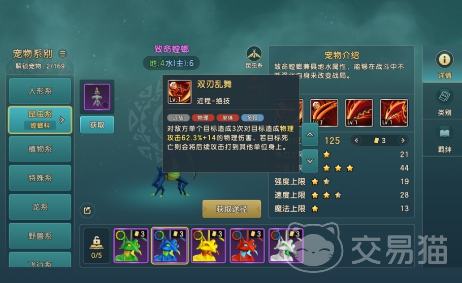 以上就是魔力宝贝复兴致命螳螂好用吗的相关内容。致命螳螂的技能还是挺有特色的,前中期非常的好用,培养起来后也能在实战里有着不错的发挥,是游戏里比较实用的昆虫系宠物之一。