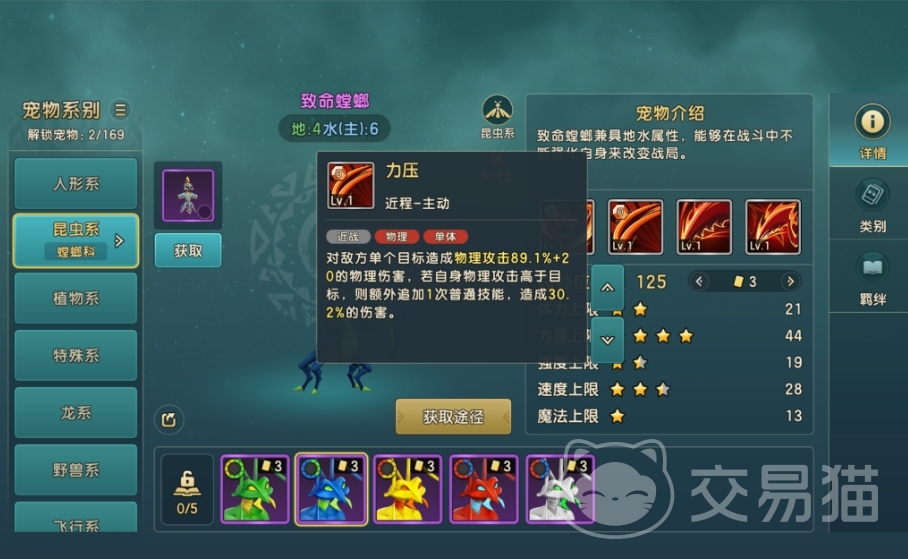 主动技力压则是一个会比较致命螳螂与目标敌人物理攻击的技能,要是致命螳螂的物理攻击更高,在造成一次伤害后会再追加一次普攻,可若是致命螳螂的物理攻击比目标敌人低,那本次就不会发动追加攻击。但要注意致命螳螂本身物理攻击成长较高,因而力压技能发动效果的次数还是比较频繁的,实战里也非常好用。