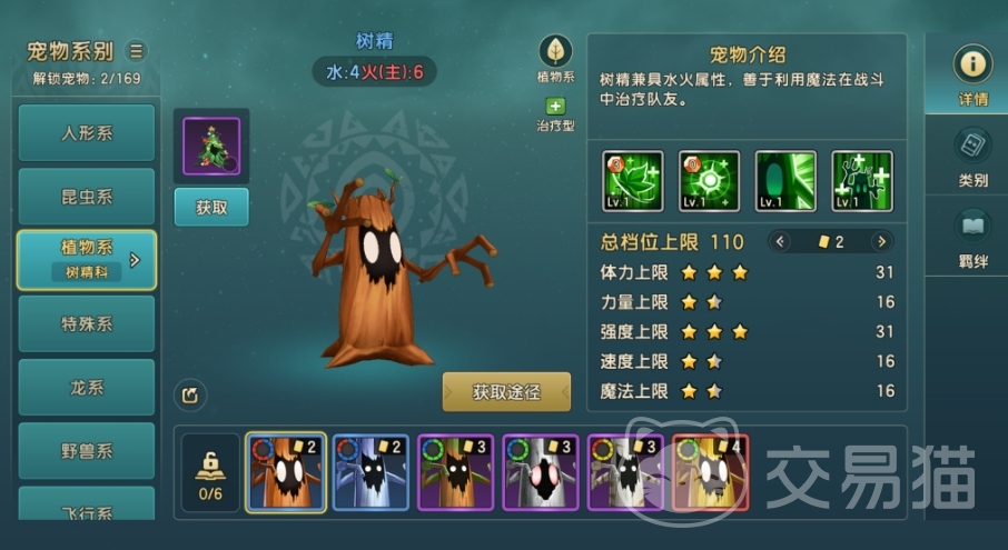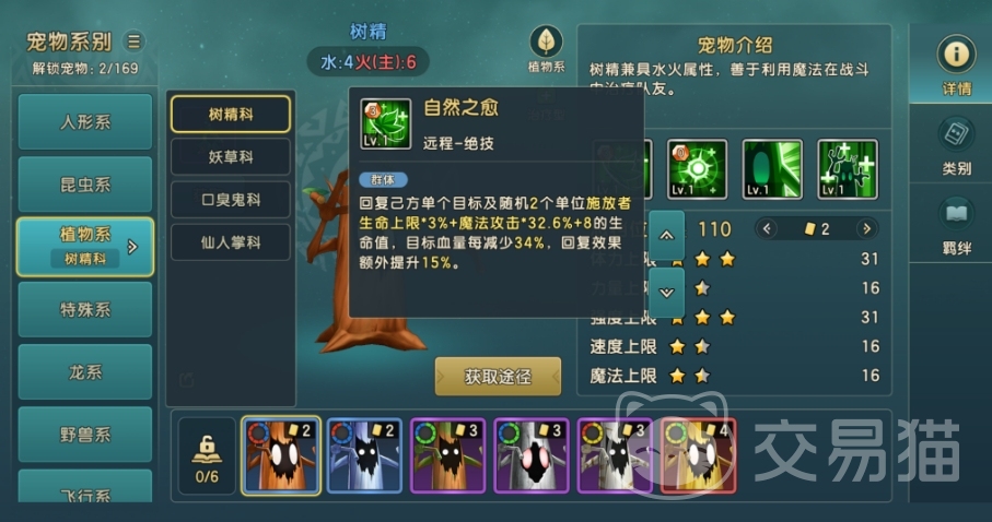 树精是前期非常实用的血宠之一,同时还兼顾着不错的治疗能力,获取方式也非常的简单,属于练级挂机必带的宠物,当玩家们没有更强力治疗宠之前,树精是很好的选择。