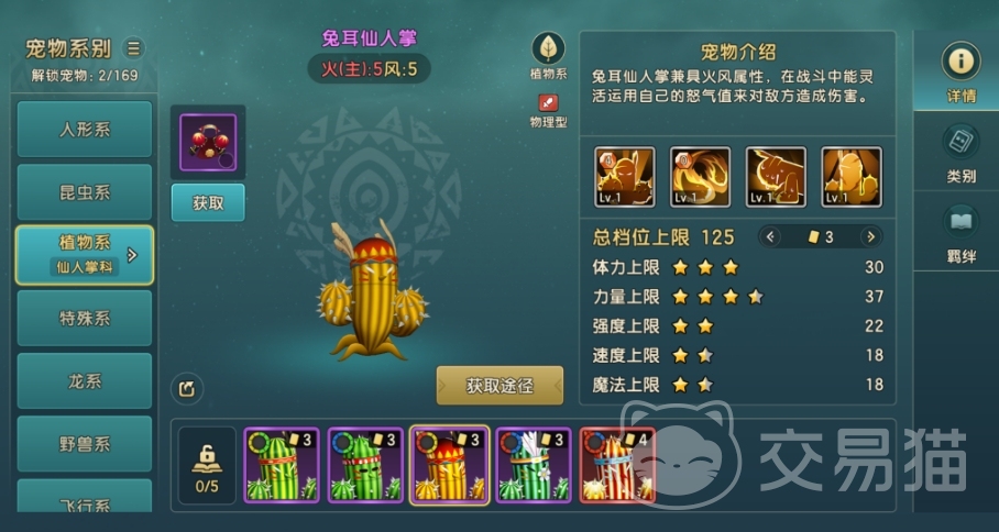兔耳仙人掌是比较吃怒气来进行爆发的一种宠物,在游戏前期就能直接挂机捕捉,且拿到后养养就能直接使用,性价比可谓相当的高。后期时虽然会因属性成长受限,但在PVP中也能出场。