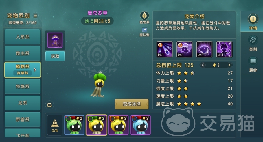 较高的魔法成长和优秀的控场能力,让曼陀罗草的就业空间非常的广,再加上地风属性也能很好地克制前期不少敌人,属于练了就不亏的宠物,而且还不吃额外的属性点资源。