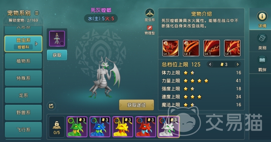 无论是前期练级还是后期挑战BOSS,死灰螳螂都能为队伍提供不错的输出能力,更何况螳螂系的宠物本就泛用,死灰螳螂自身成长又高,练了自然不会亏。
