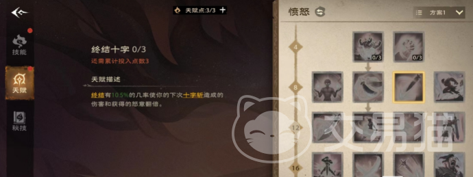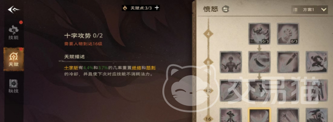 接下来,我们进入第二层。这里“强化怒火”能进一步提升玩家的伤害输出,让玩家的怒火技能更加强大。“狂怒冲锋”则能增加玩家的移动速度和攻击速度,让玩家在战场上更加灵活多变。至于“终结十字”,这个技能特别适合用来对付那些血量不多的敌人,能造成额外的伤害。