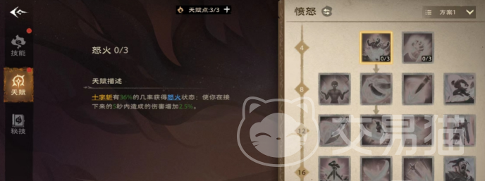 首先,我们来看看哪些天赋是值得优先考虑的,在天赋树的第一层,有两个很不错的选项:“怒火”和“怒意渴望”。怒火能够让玩家在战斗中爆发出更强的攻击力,造成更多的伤害,非常实用,所以建议玩家把这个点满。而怒意渴望呢,就是让玩家能更快地积累怒气,这样玩家就能更频繁地使用那些需要怒气才能发动的技能了,这个也建议点满。