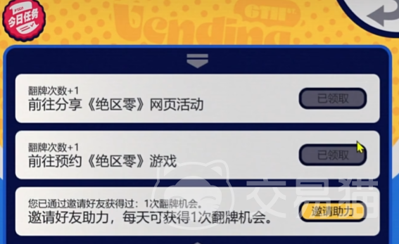 绝区零的这个预抽卡活动是一个刮刮乐类型的活动,在该活动中大家可以看到几个牌子,这九个牌子大家是需要去刮的,这刮的次数需要大家去做每日任务或者是去邀请好友获取。