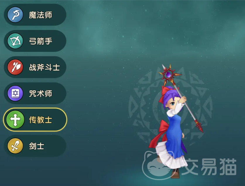 传教士,俗称治疗,奶妈。是目前游戏里面唯一的辅助治疗职业,他的功能性非常的多,基本上只要不是有着100%把握的战斗,玩家们都会选择带一个传教来加入队伍,这样队伍的生存能力可以大大增加。
