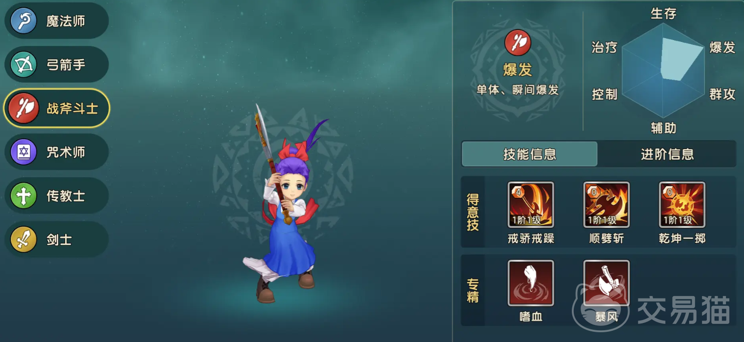 战斧斗士是属于后期发力的职业,前期因为本身并没有什么可以对多的技能,这也让其的练级速度变得很慢。但在后期可以进行牛鬼神庙后,我们的作用就发挥出来了。这个时候不仅练级很快,同时在对付高难副本和BOSS也有着伤害极高的优势,这也让其成为一个香馍馍。剑士目前属于中规中矩,他主要的伤害都是依靠装备,所以如果资源准备不是很充分的话不建议使用这个职业。