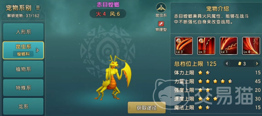 首先让我们来了解一下黄螳螂。它拥有一身亮丽的黄色外壳,仿佛穿上了一层金甲。而那两只大大的翅膀、四只长长的脚爪,以及那锐利的刀状臂,都让它看起来威风凛凛。在战斗中,黄螳螂总是能够发挥出惊人的实力,成为玩家不可或缺的战斗伙伴。