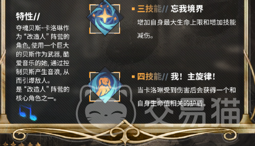 4、我!主旋律!:是不少人都喜欢的被动技能,如果角色受到外界的伤害,造成持续伤害的同时还能够带来叠加的效果,可以根据最大生命值增加10%的护盾,能带来更好的防护作用。