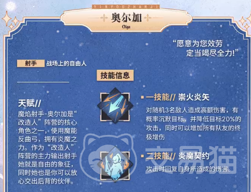 吟游战记奥尔加是一个射手职业,定位主力输出,能够给所有的成员,都带来对应的增伤效果。而且还可以有效提升角色自身的暴击率或者是攻击力。吟游战记奥尔加好用吗?这就是大家非常关注的内容,很多的玩家对此都会有一些兴趣,想知道这个角色到底怎么样?