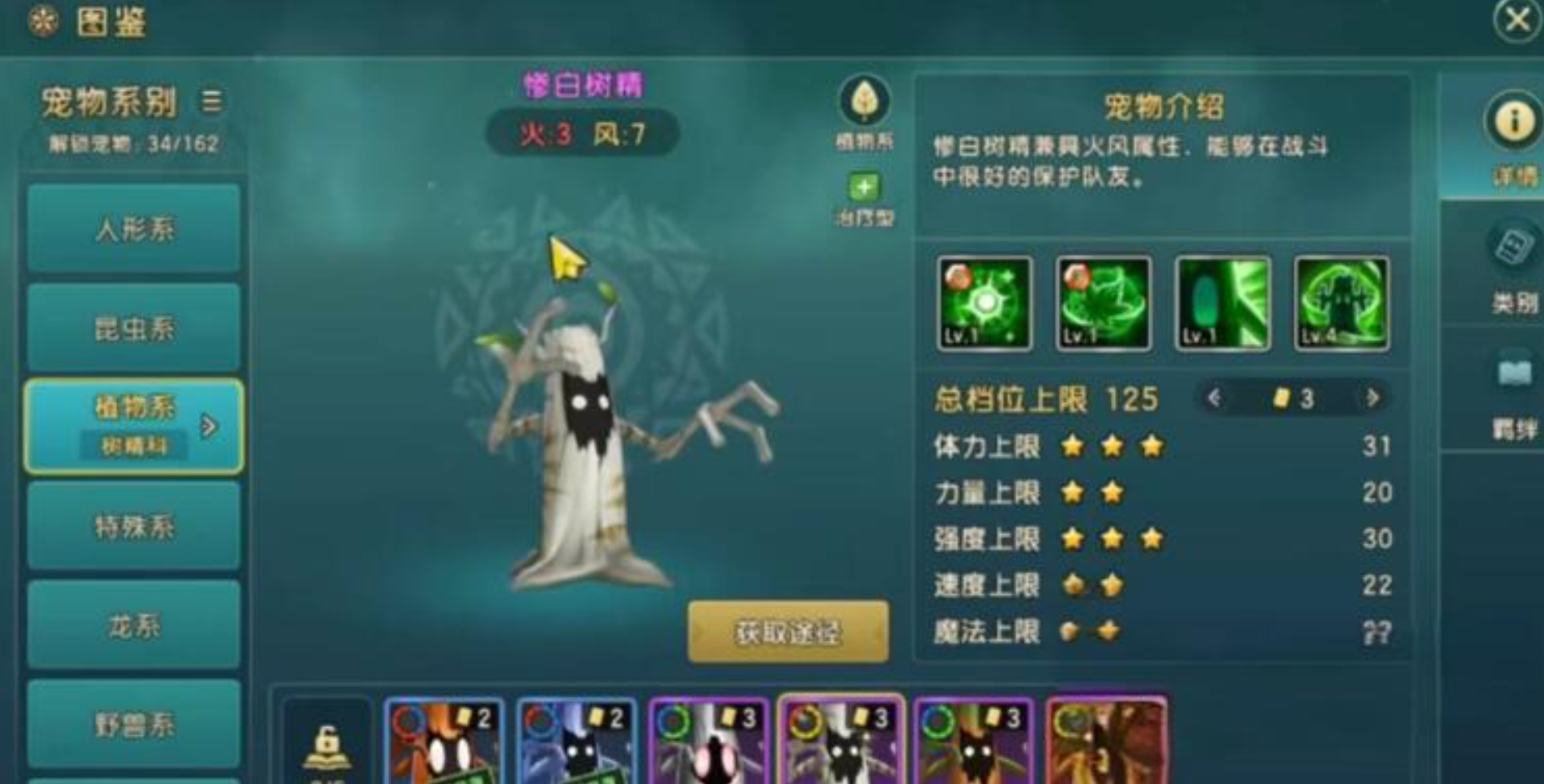 在该游戏当中涉及到的树精科的种类繁多,其中包括最普通的树精。要说最普通的树精,它的技能相对一般。当然不同的树精,它们所拥有的属性和技能各有不同,另外还有一些树精,像黄金树精,冰冷树精,沼泽树精,惨白树精以及死亡树精等等。