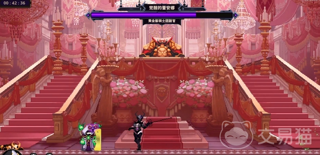 来到第二关后,会进入大礼堂的宫殿之中,攻克宫殿走廊的各个卫兵小怪之后就会来到如下图所示的这个场景,金鬃骑士团的光头大胡子团长会先和你对话一阵,之后以傲慢的姿态宣布将由自己手下的两名副官来与你对战,他的两名副官是身法敏捷的蕾安娜姐妹。