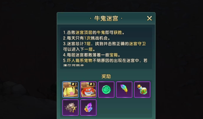 玩家需要等级达到26级才可以解锁这个玩法,此时就可以去挑战牛鬼迷宫了。这里面每一层都会有一些怪物,只有击败真正的守卫才可以进入下一层,一直挑战到顶层,击败牛鬼就获得胜利了。