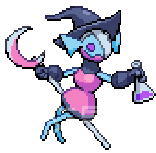 毒系妖怪,骑着棒棒糖型扫帚,手持试剂瓶的魔女,战斗中释放炼金药剂来攻击对手,目前栖息地位未知,有着较为突出的近远攻,速度也高,没有什么明显缺点,最大血量130点算是中规中矩。