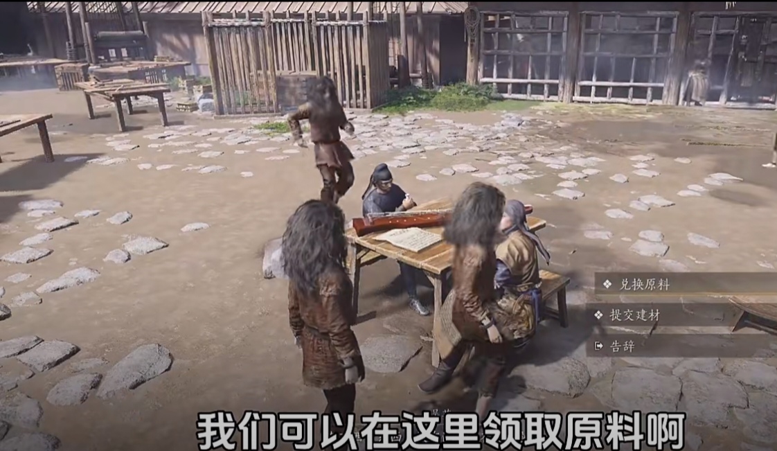 2、点击小头目交谈会出现兑换原料、提交教材、告辞等选项,玩家需要选择兑换原料。