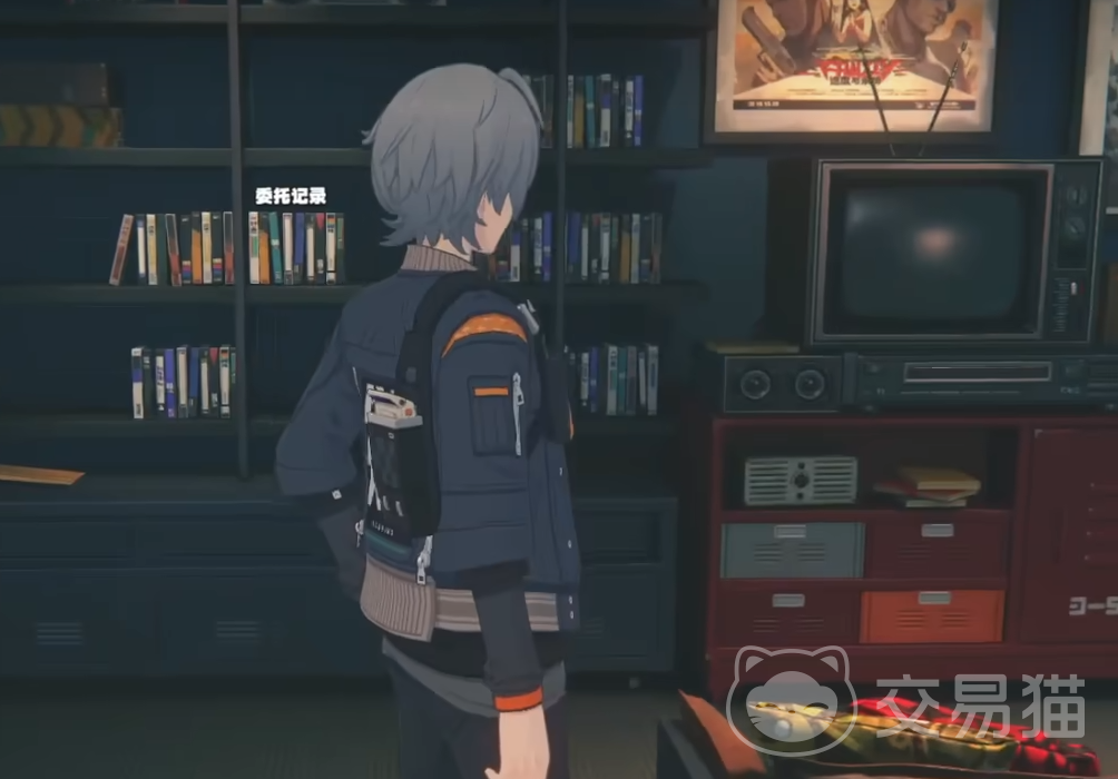 在出了改装店之后,旁边就是我们的录像店,这个录像店便是我们主角的办公区域。进门之后可以看到游戏宣传CV里出现的18号邦布,这位就是我们的录像店的营业员。录像店的作用是让我们获取一些游戏货币,每日我们都需要上架一些电影,之后来进行营业。录像店里面会有着一个沙发,沙发可以进行休息,同时沙发旁边有一个书架,我们可以在书架这里翻看之前完成任务的记录。