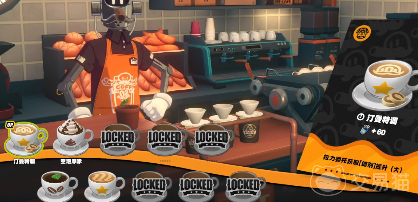 在电玩店附近有一个咖啡馆,这个咖啡馆我们每天都可以来这里喝一次咖啡,咖啡的作用就是为玩家们补充电量。每次可以补充60点电量。这里面不同的咖啡可以获得不同的效果,但是回复的电量是一样的。