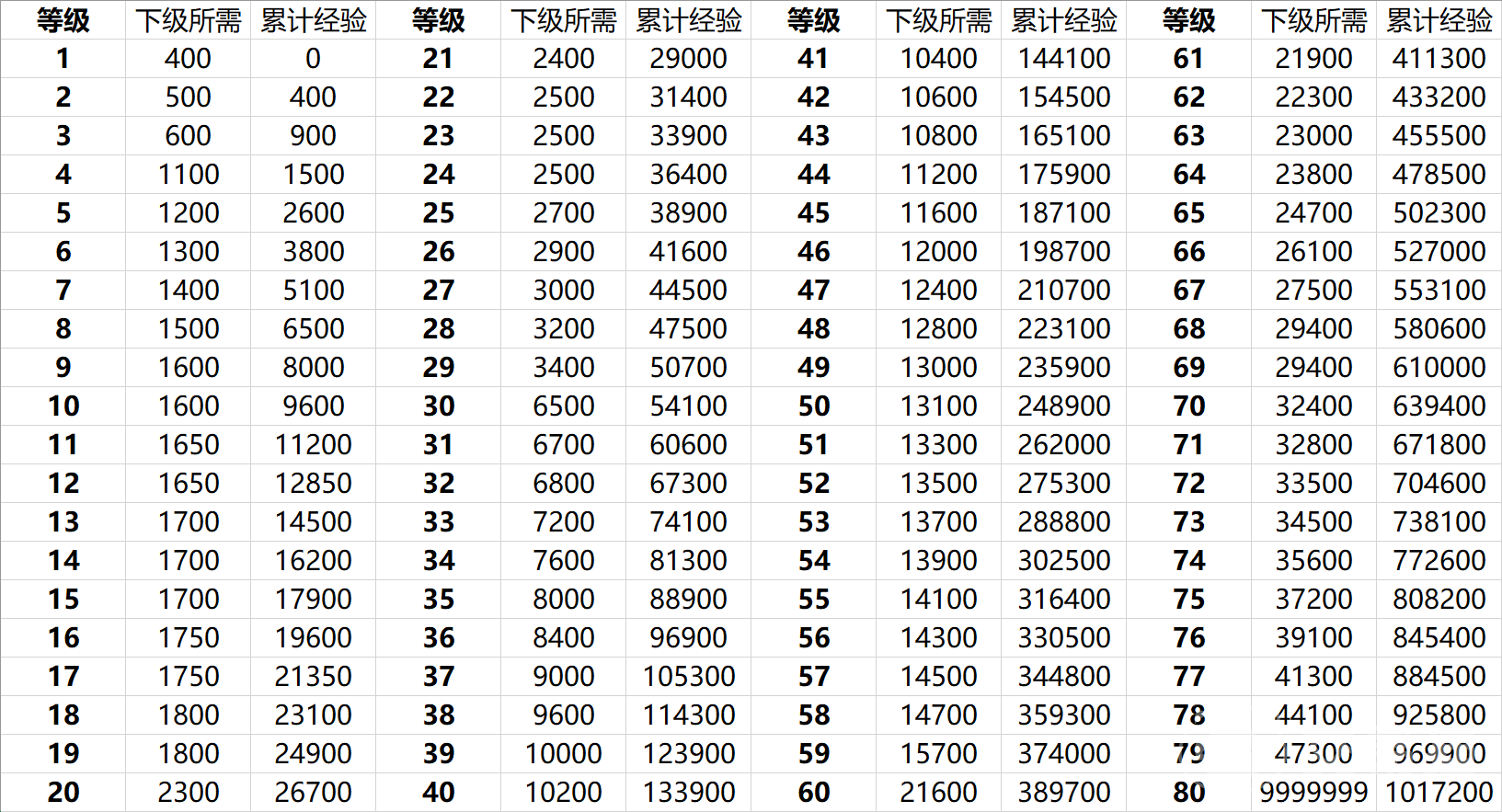 鸣潮升级经验表已经分享给大家了,大家可以对照着看一看自己还要肝多久才能升到最大等级,等大部队到了这个等级之后,估计还会再开放新的等级上限,但那就是很久之后才要考虑的事情了。