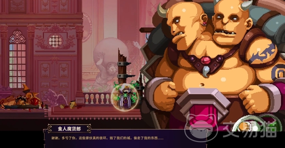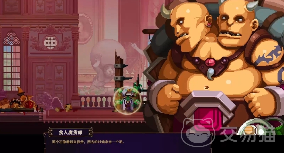 食人魔货郎本身也算是魔王城中身份比较重要的一员npc,在救下它以后二周目再回到魔王城时就会见到它,它的作用除了在主线中传述一些礼堂所发生的剧情,还会在魔王城赠与你一件随机的装备。