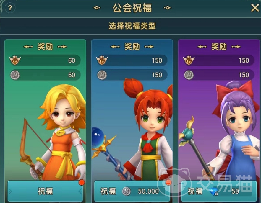 加入公会之后,一共会有六大主要玩法,第一是公会祝福,玩家可以在这里面进行祝福,分为三种类型,分别是免费祝福、银币祝福以及钻石祝福,他们的奖励是不一样的,祝福的品阶越高,所能获取到的公会贡献值就会越多。