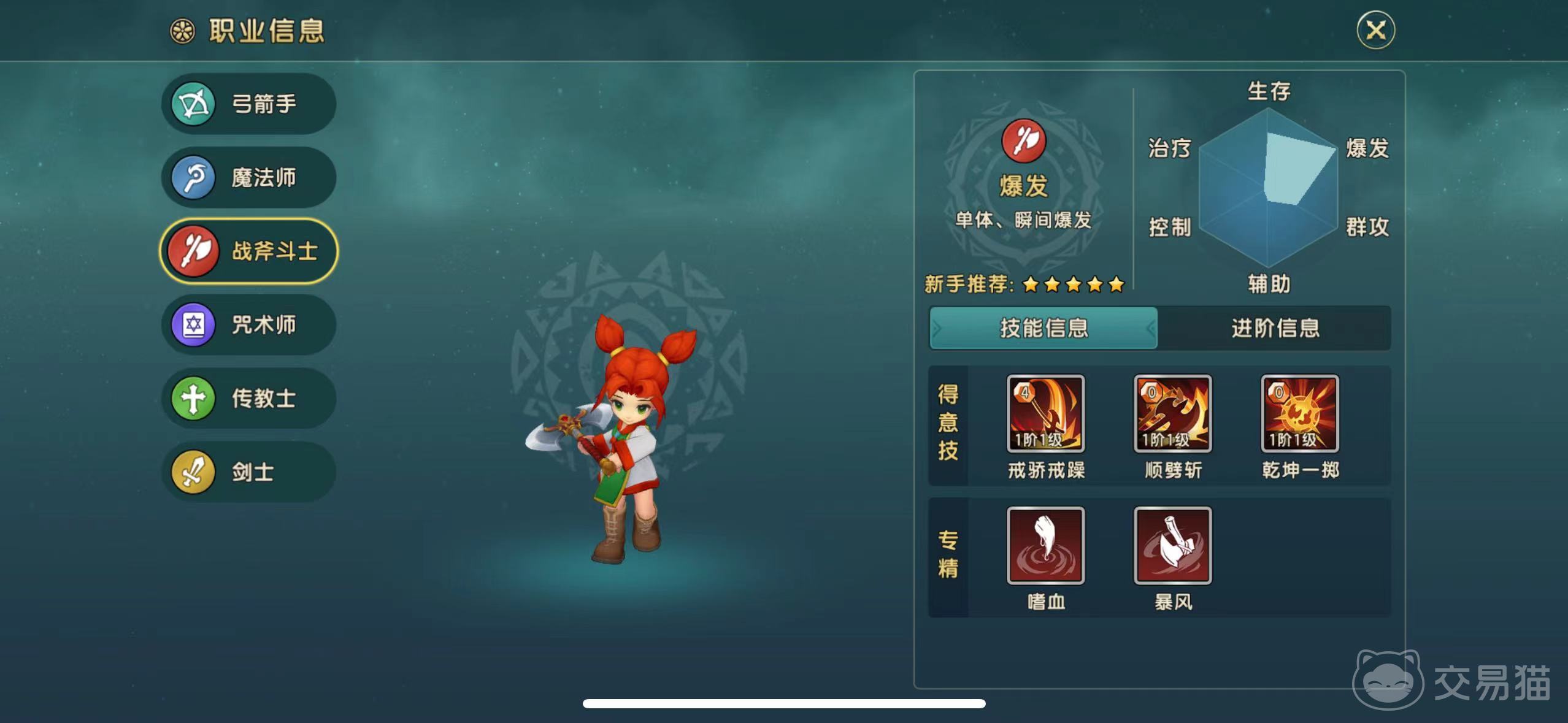 第三个职业为战斧斗士,这是一个近战角色,拥有强大的爆发力,可以站在前排帮助队友抵挡伤害,同时也拥有不错的近战攻击实力。