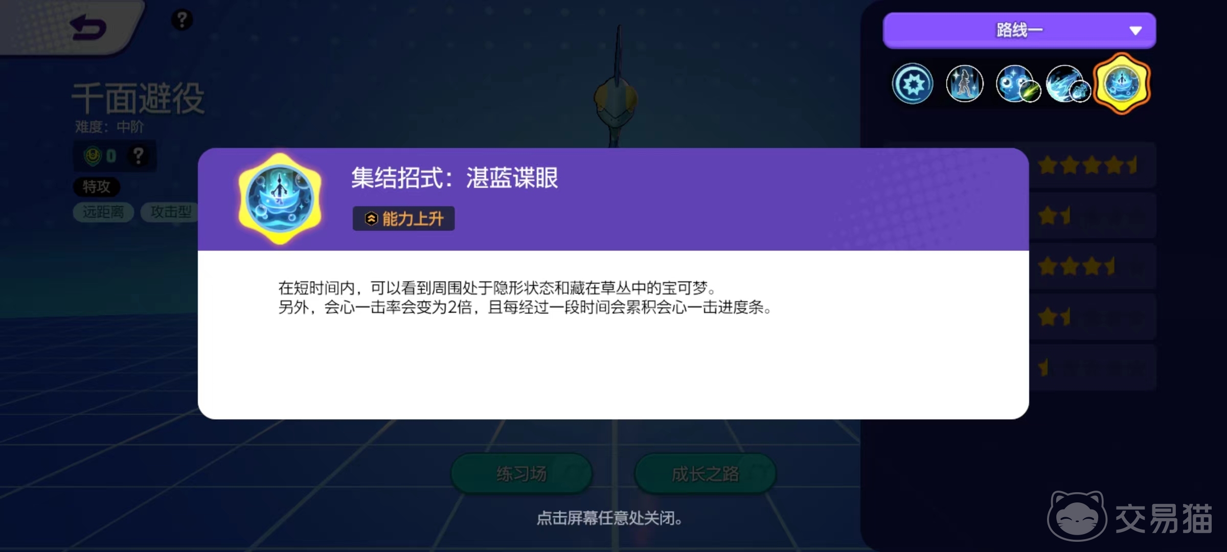 现在大家就清楚宝可梦大集结千面避役招式有哪些了吧,如果大家喜欢在游戏中通过远程手段来消灭敌人,那么选择该角色是非常出色的。当然这里并没有考虑到实际得分能力,仅仅是为了展现大家的操作技巧。伤害输出高了能够快速消灭对方,得分肯定也不会差。