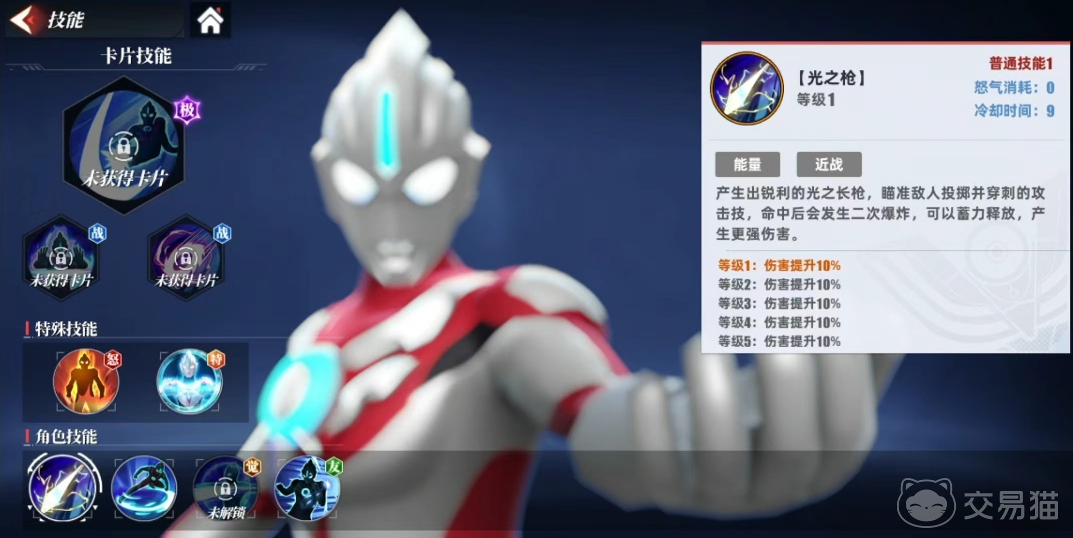 第1个普通技能光之枪,利用锐利的光之长枪瞄准敌人投掷并穿刺进行攻击,命中后引发二次爆炸效果,可以通过蓄力释放带来更高的伤害。第2个技能横扫重击,利用腿法快速击飞敌人,再用重拳打击,与普攻进行结合起来很好用。第3个也就是觉醒技能欧布原生光线,双手组成十字后发射必杀光线,伤害很高。最后一个友情技能,冲撞敌人造成伤害并击退目标,这样的击退技能是很多玩家都会选择的,所以欧布原生初始往往作为友情支援出场更朵。