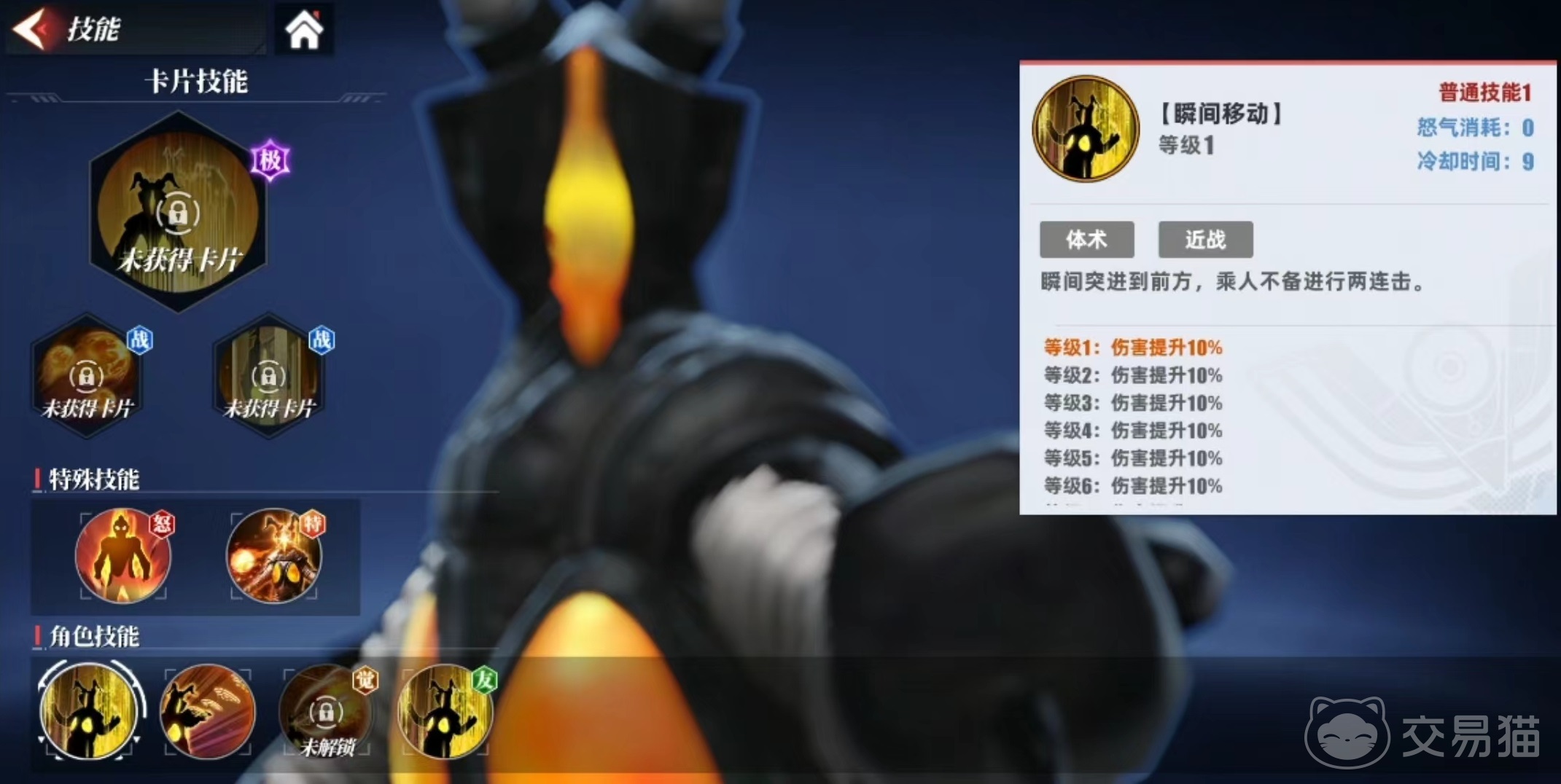 该技能将抵挡和反击等集合起来,需要判断出对方接下来的动作才能够有效使用,很多远程攻击都属于远程子弹类型,能够直接抵挡。该角色同样适合在副本中进行战斗,对奥特曼类敌人暴击率额外增加,虽然只有副本战斗生效,但不失为闯荡高难度关卡时的可选项。第1个角色技能瞬间移动,能够瞬间突进到前方,趁对方不注意进行二连击,在效果方面和终结技非常相似。同样是该角色的杀手锏之一,很难防备。