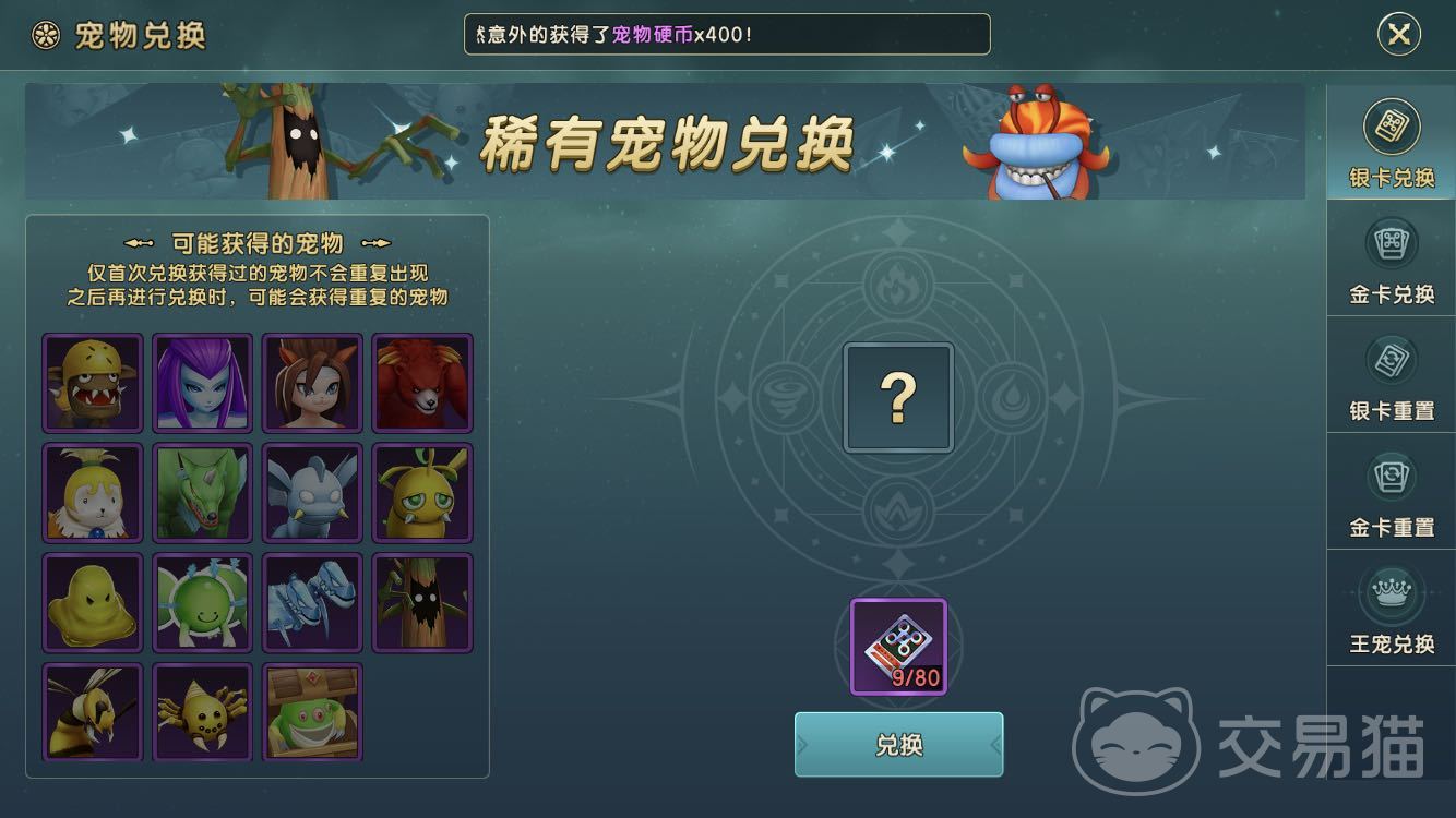 在金色稀有宠物中推荐【兔耳吓人箱】,这个宠物能够在作战中给玩家带来大量的巨额伤害;在银色稀有宠物中推荐【虎头蜂】,这个宠物拥有飞行属性还能在战斗中制造高额伤害值。在金卡稀有宠物中推荐【丘比特】,属于飞行系宠物还能在对战中对敌方造成大量的伤害。