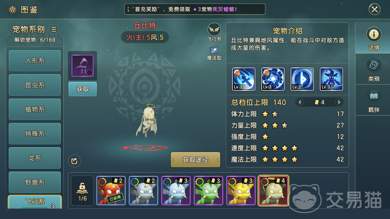 游戏中的宠物有阶级之分,最高级的自然是王宠,不过获得难度较大。在玩家达到30级之后如果有资源的情况下可以携带一只王宠。在王宠上建议【丘比特】,作为魔法型的宠物,在技能上有大量的魔法伤害,在宠物阵型中可以作为首位出战。不过对于王宠级别的宠物拥有即可不能太过于追求种类。