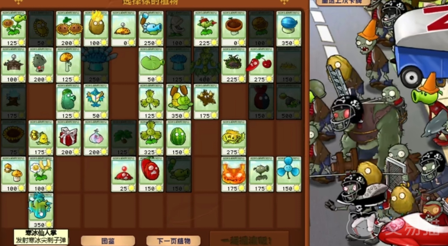 而在植物大战僵尸杂交版的第41关的地图后方就是陆生植物的天下,大家需要种植阳光,向日葵,寒冰,仙人掌等等,先形成基础的防御之后就可以将樱桃辣椒蘑菇伞以及冰冻西瓜,大喷菇,磁力坚果等等进行。