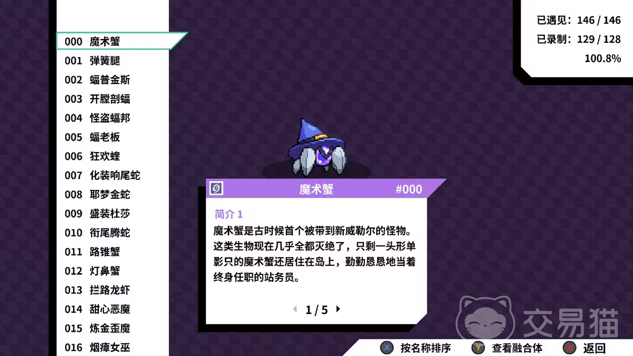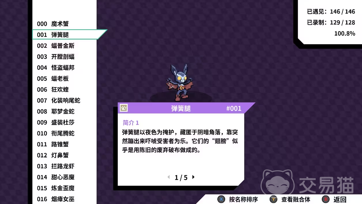 以上就是有关磁带妖怪英文名图鉴的全部内容分享,整个游戏的怪物数量都是很多的,并且很多怪物彼此之间还可以进行融合,进阶的怪物更加强大,所以小伙伴们可以了解的对象有很多,了解的越多,就能知道哪些怪物实力越强大,对于后面小伙伴们培养自己的怪物军团是很好用的,将拥有不同技能和天赋属性的怪物组织在一起,建造一个强大的妖怪天团。