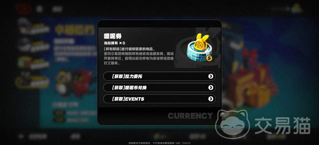 邦布目前只有抽卡这一种获取方法了,消耗道具“嗯呢券”抽邦布,邦布的卡池名为“邦布频段”。S级邦布的单抽概率1%,80为一个小保底,池子当中目前有6个邦布,10个A级的邦布,抽到了邦布的话,还会给一定数量的嗯呢币,这个道具,不仅可以兑换嗯呢券,还可以兑换A级的。嗯呢券是从哪些地方获取呢,可以在零号空洞当中获取,拉力委托的奖励,还有绳网等级的奖励,最后就是从丽都城募的等级奖励获取。