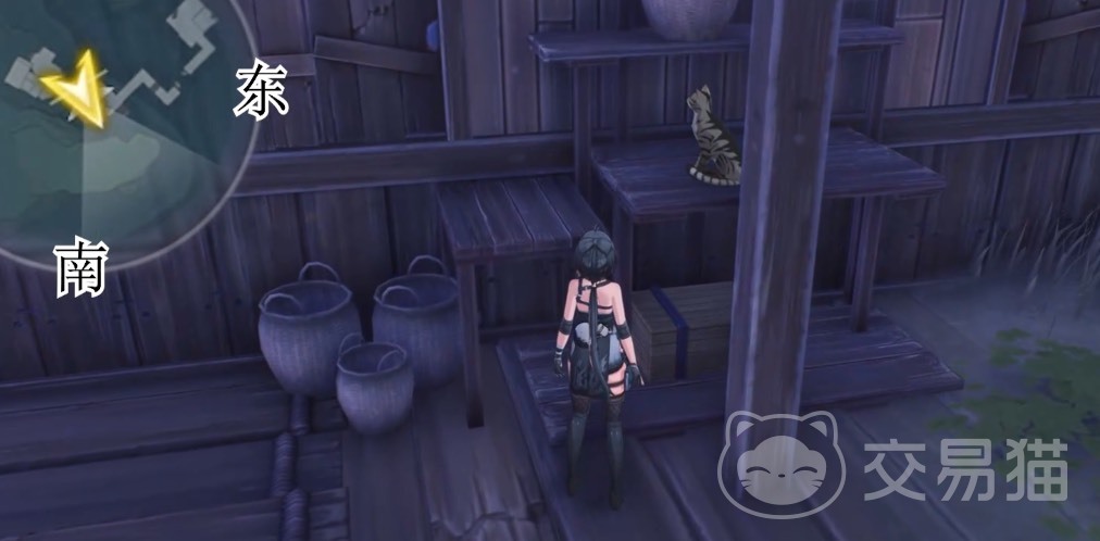 第二个区域在桃源乡上方点位。传送出来后往地图的南方向飞,随后看到右前方有一个平台,平台上面有几张桌子。到达该位置后,继续往南方向走,走到前方的楼梯处。在斜坡和平地交接处的位置,往左侧看,也就是地图的东方向,靠着山体的木箱子上有一个。紧接着打开地图,传送到潮生崖最下方沿海的点位。往地图东方向看,一直向前走,在前方的房子处跳下来,有一本书籍就在黑条纹灰猫的下方。