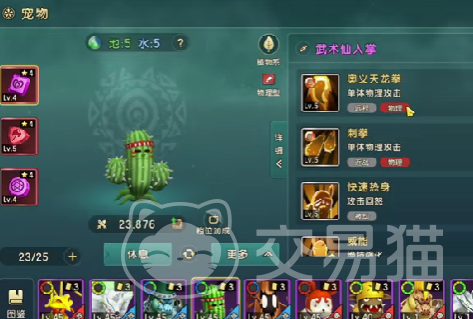 作为血攻宠物武术仙人掌,它的生命力和攻击能力甚至于恢复能力都是非常棒的。所以很多玩家会利用武术仙人掌去攻坚战。由于它可以力量加点,能够连击,崩击等等,所以玩家尽可能的要发挥它的优势。