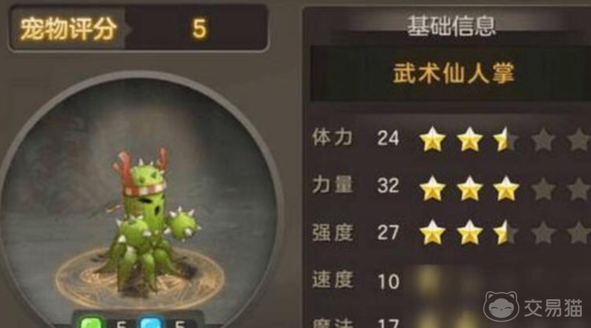 要说武术仙人掌宠物在游戏当中,它也属于仙人掌科当中的一种,它的成长值属于中期宠物中的一般水平。不过千万不要忽略了武术仙人掌的优势,因为它产生的力量、体力、甚至强度都是非常棒的,只是它的速度和魔法特别的低,所以玩家想要充分使用武术仙人掌的时候,千万要注意它不太适合在高速或者是高魔法的环境当中,只是它的生存能力和攻击能力有所保障。