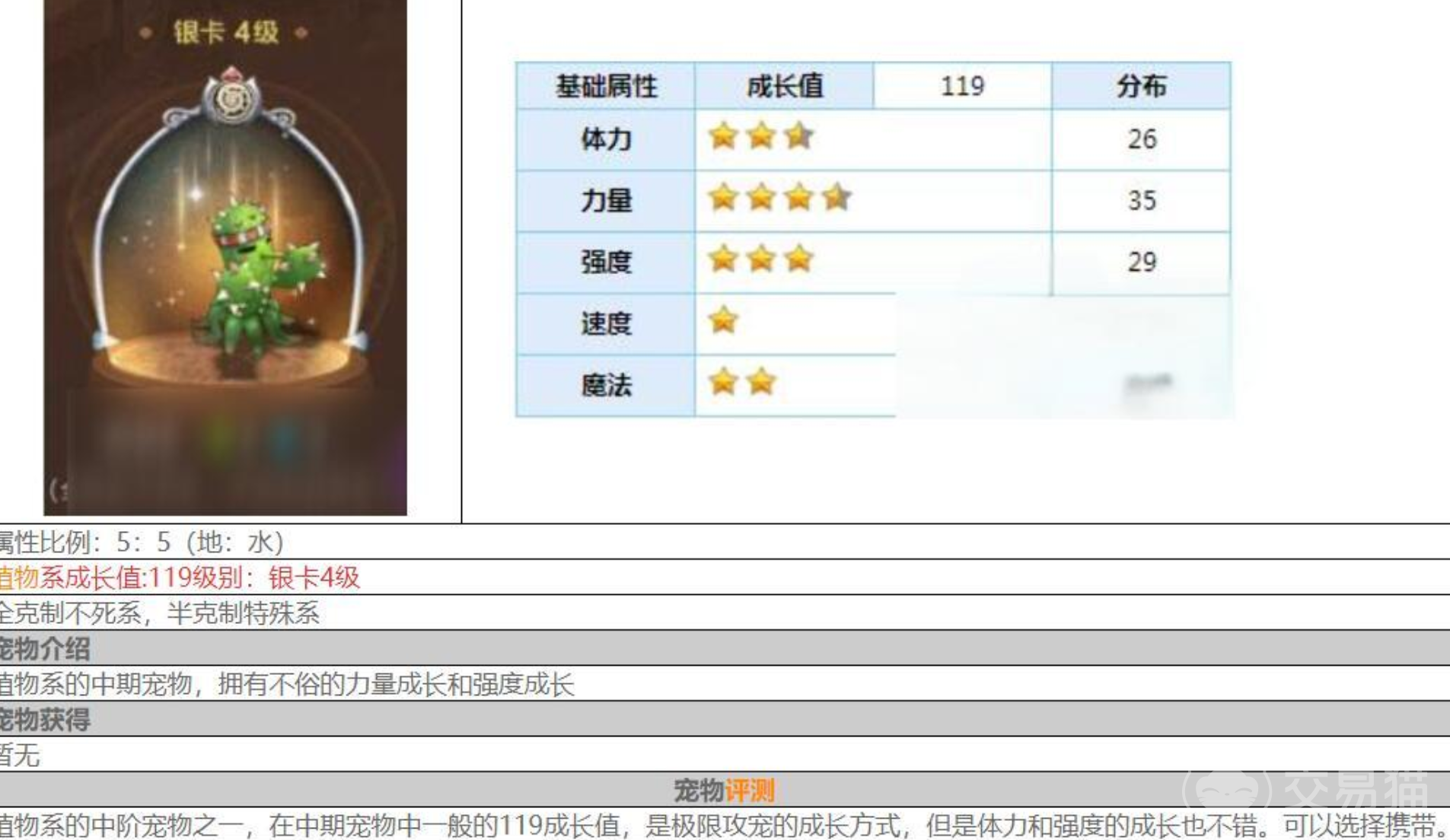 不得不说,武术仙人掌在仙人掌科宠物当中的人气特别的高,它的造型跟表现力都不错,在加点方面,它能够有不错的价值,而它在植物系的中期,会产生不俗的成长和强度,在游戏中期值得推荐的宠物。