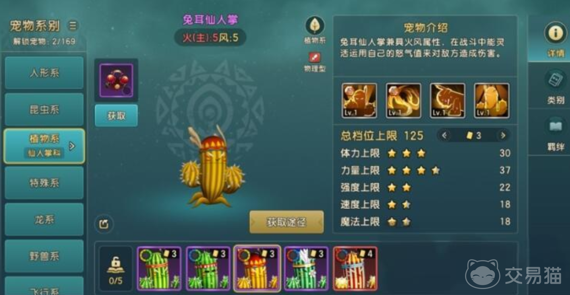 在仙人掌科宠物当中,很多玩家发现他们具有鲜明的特点,而且实用性也特别的强,主要分为兔耳仙人掌、武术仙人掌、印第安仙人掌等等。其中兔耳仙人掌在前期特别容易获得,玩家只需要挂机就能够获得兔耳仙人掌。一旦养成之后,它的性价比特别的高。毕竟兔耳仙人掌依赖怒气,能够实现爆发,前期的表现特别的强劲,后期在成长方面可能会受到限制。