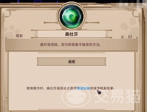 美杜莎:效果是召唤美杜莎对前方敌人造成魔法伤害和眩晕,精华作用的范围比较大,因此被小怪包围时用来突围非常合适,但它冷却时间略长,有足足37秒。