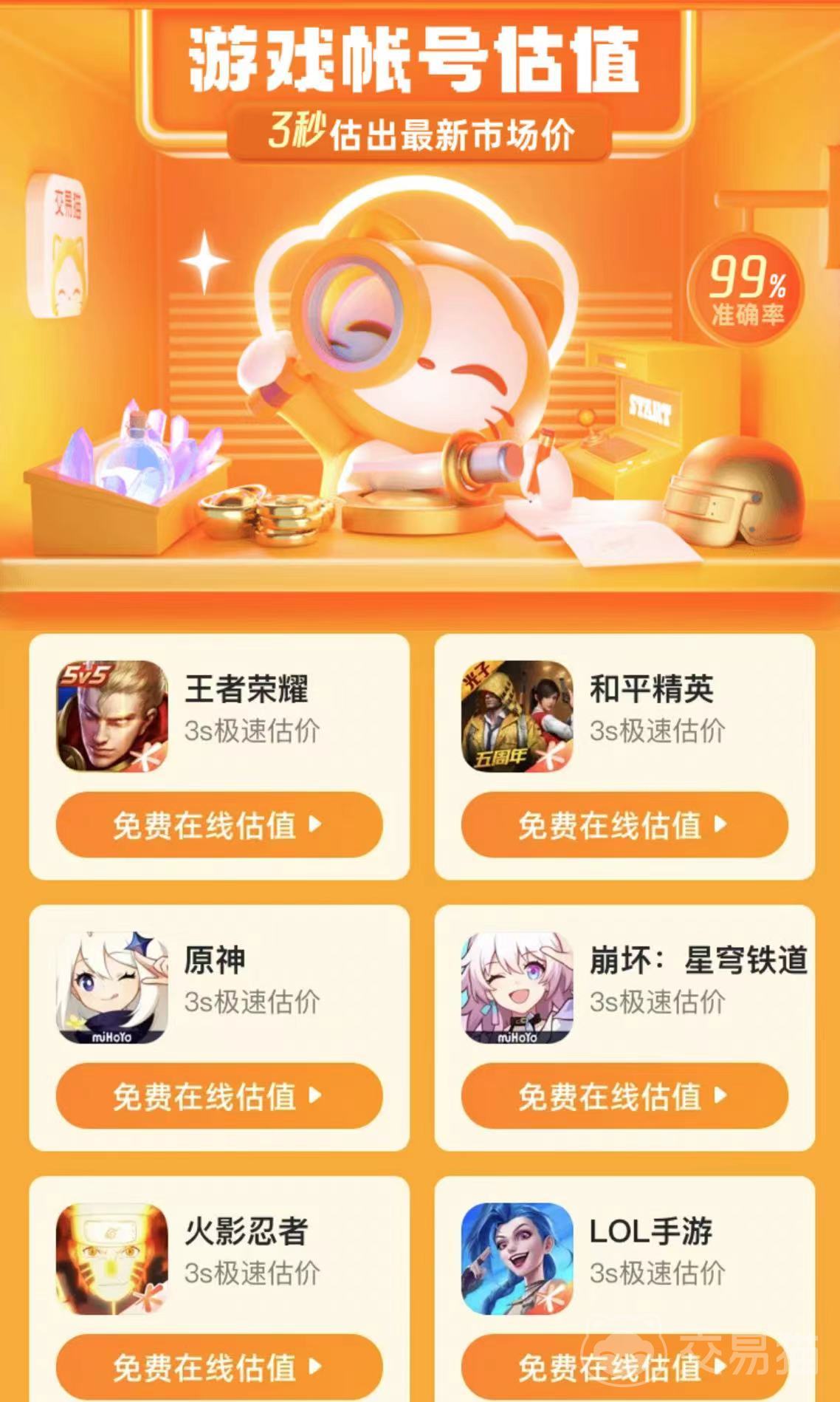 很多用户并不是专业的卖家,对于账号的价值和市场动态不够了解,如果没有提前专业估价的话很容易导致标错价格造成亏本。交易猫可以免费给部分游戏账号估值,支持的手游有和平精英、王者荣耀、LOL手游等,填写好资料以后只要几秒钟就能获得系统的估值结果,准确率非常高,大家卖号只要参考这个估值就不会亏了。