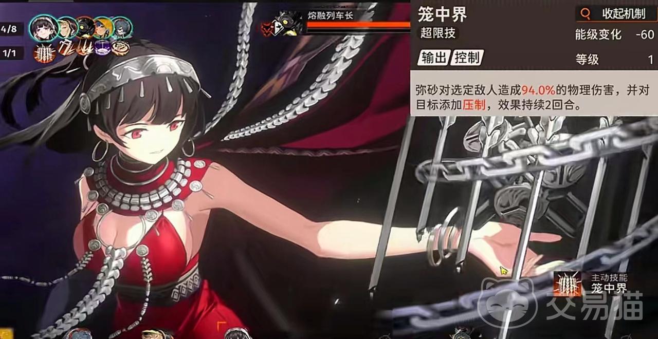 三技能的是笼中界,使用对于这个技能在游戏中弥砂选定的对手能够造成94%的伤害,并且在这整个过程中弥砂对使用的目标对手能够持续产生长达两个回合的压制效果。