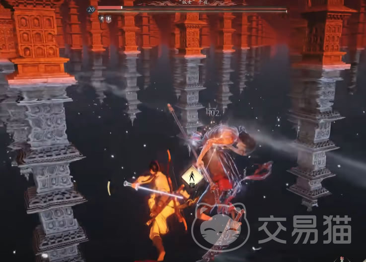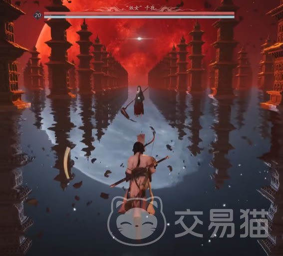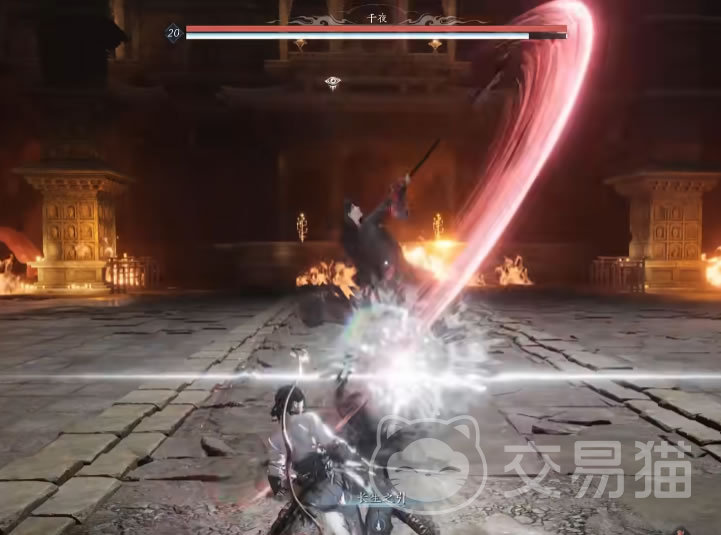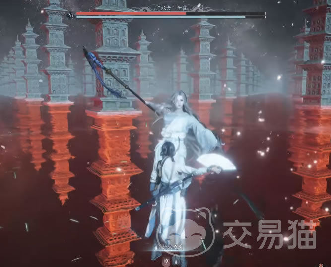 第二阶段切换到一个新场景中,同时千夜也发生了变身。刚进入战场就可以切换扇子,先用治疗技能给自己回血,只要不靠近Boss,她不会打你。恢复治疗一下后再上前,吸引Boss发动攻击,你只需要进行卸势和躲避;当她耗完韧性倒地时,再切换主武器进行输出。这个阶段注意,有时Boss一套连招上天之后,会有从红光变成金光的状态,接着一个下劈,这一招是无法卸势的,只能躲开。