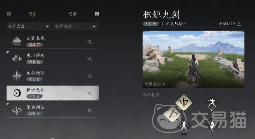 首先进行备战,先选择一套最主要的输出武学,升到最高等级,保证输出伤害最大。比如积矩九剑这种基础的,用双刀、陌刀、长枪等,都有强力的输出武技,一样可以作为主输出选择。