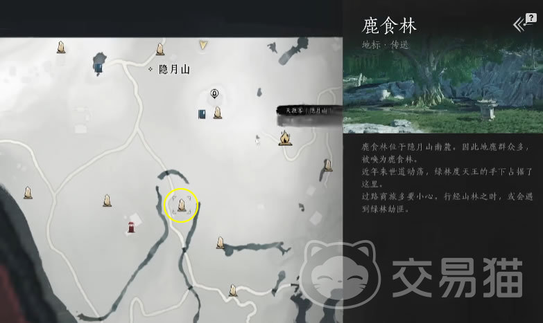 时一墨对话做完,就可以前往鹿食林,鹿食林位置在隐月山南部。到了鹿食林,向大树方向走,找到时一墨,和她继续对话,完成后就可以传送前往瓷窑。