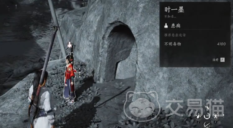 与她对话发现她神志不清还肚子疼,检查发现她是中毒状态。学会悬壶医术就可以给她治疗,治好后知道她是吃了“红伞伞白杆杆”的毒蘑菇导致的。