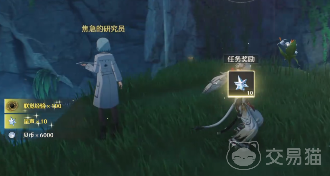 打完猿猴之后沿着陆地往上走还可以看到一个宝箱,开启拿到奖励之后回到研究员处跟她对话,告诉她把猿猴都赶跑了,便就完成了此次的委托任务了,研究员还会给大家一些关于任务的奖励。